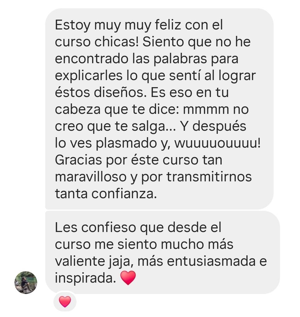 Es un curso que lo pensamos para que disfrutes todo el proceso. Que disfrutes mientras dibujas, mientras pintas, mientras eliges los colores y que te sorprendas de lo que vos misma sos capaz de hacer.